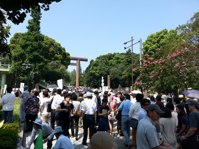 何よりも、今年もちびっこから老人まで、炎天下の中、沢山の国民が参拝に訪れていました。長蛇の列に一時間並びました。
