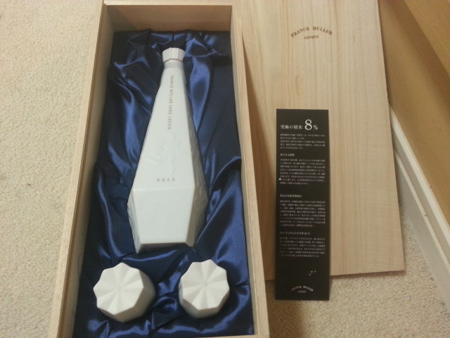 宮城県大崎市三本木の蔵元新澤醸造店とフランクミュラーのコラボで醸造された、究極の精米8%の純米大吟醸の冷酒「伯楽星」をプレゼントされました。