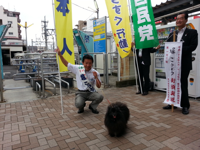 堀こうどう候補の応援にまぁやも駆けつけました! 2013/06/17