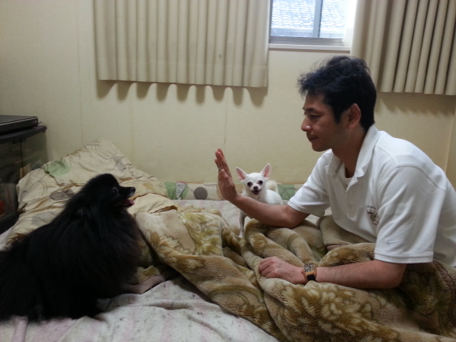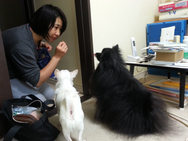俺もまぁやにおやつあげました。まぁや、お座り!