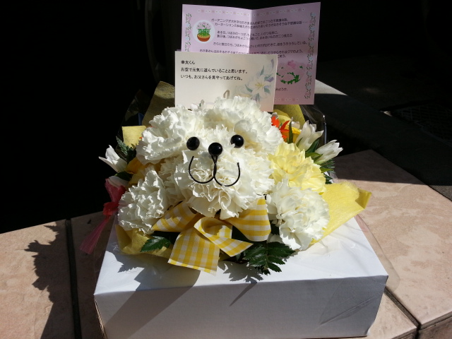 今日は幸太の一周忌です。FBFがハナクマさんのアレンジメントが届きました。 2014/09/02