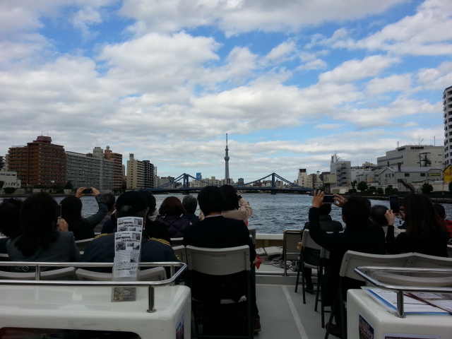 隅田川では東京スカイツリーを眺めながら北上し、清澄橋を超えて新大橋(浜町公園)手前でUターン。