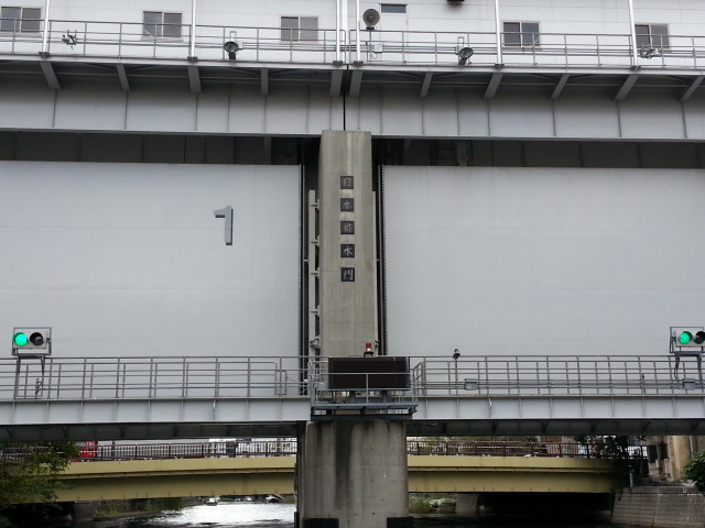 日本橋水門です。ここで日本橋川に戻ります。