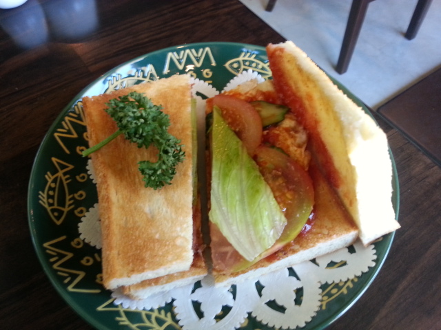 ハムエッグトースト(500円)に、珈琲や紅茶(単品400円)をセットで注文すると790円です。