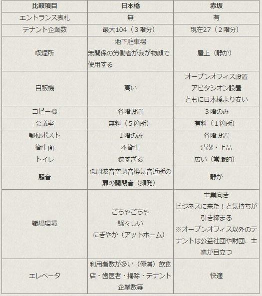 松本の勝手なオープンオフィス溜池山王と日本橋セントラルの比較です。