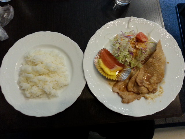 15:49、マリーベル衆議院第一議員会館店で生姜焼き定食。