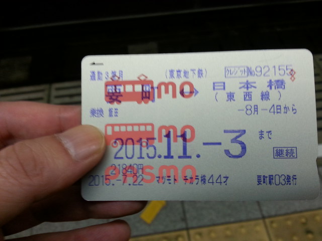 【日本橋】要町→日本橋の定期券の期限 2015/10/06