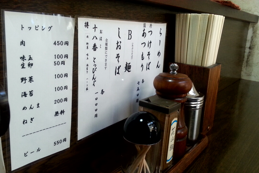 定番メニューは、らーめんとつけそば(あつもり可能)。