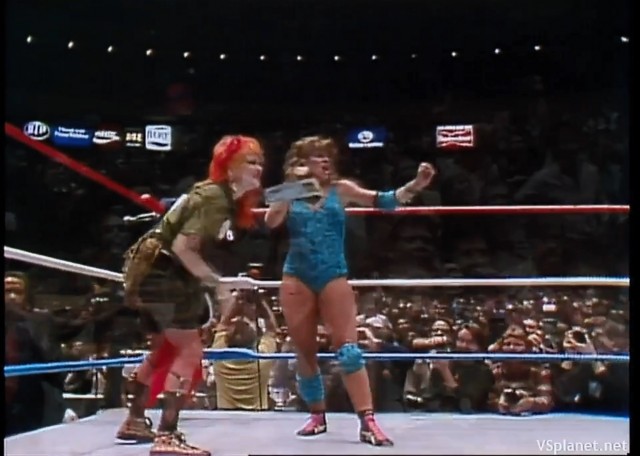 レッスルマニアにおけるレイラニ・カイ(セコンドはWWE殿堂入りしたファビュラス・ムーア)VS ウェンディ・リヒター(セコンドはシンディ)の一戦・・・レイラニ・カイ、ウェンディ・リヒターともに、全女の常連外国人選手だった