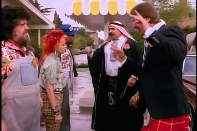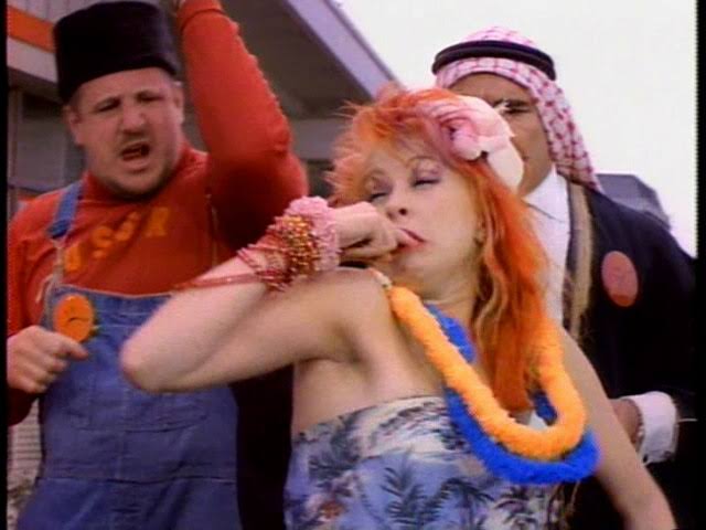 飛行機で、偶然にキャプテン・ルー・アルバーノ(シンディのプロモにレギュラー出演・画像右)と隣り合わせたことがきっかけである。