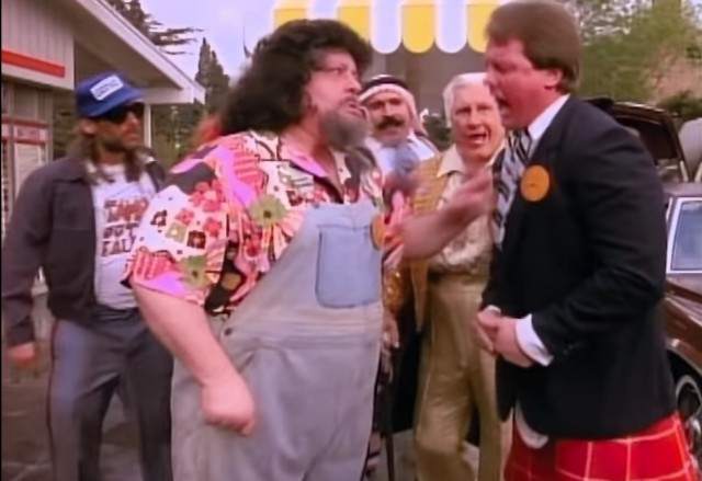 かたや、新日本プロレスで人気者となったハルク・ホーガンが、1982年『ロッキーⅢ』で”サンダーリップス”役に抜擢され、シルベスター・スタローンと対決し一大ムーブになった(『特攻野郎Aチーム』のミスターTも出演。主題歌はEye of the Tiger/Survivor)。