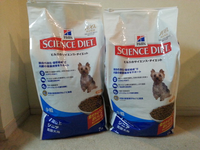 今の餌がなくなったら、シニア犬用のフードに切替。