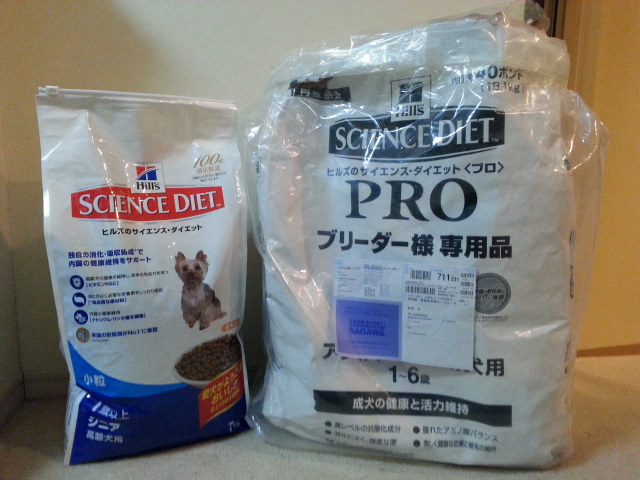 これまでのフードは写真右の18㎏入「ブリーダーパック」。