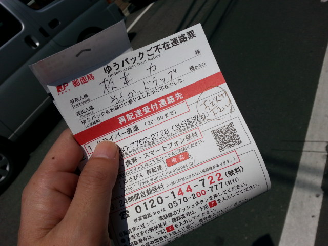 今朝、再配達の連絡をした。