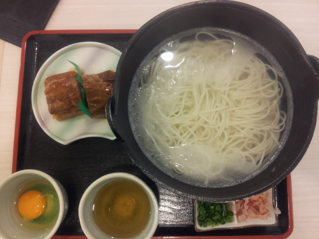 長崎空港の五島うどんです。角煮(沖縄で言うところのラフテー)付きですよ