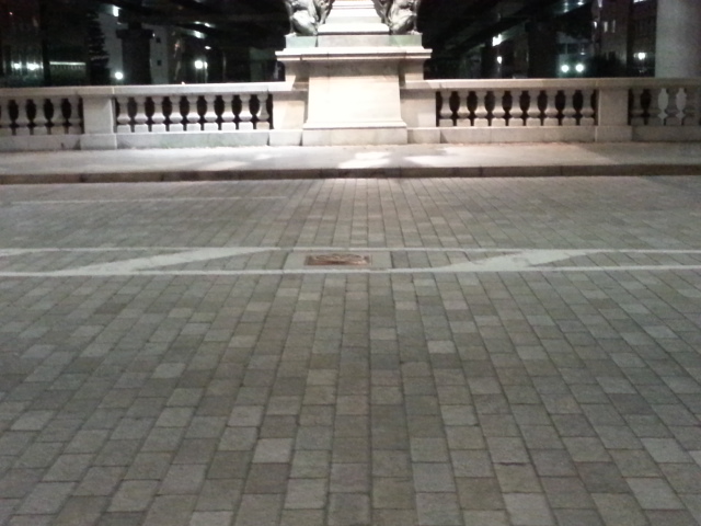画像は、中央通り日本橋の橋の真ん中の刻印であり、沿道に置かれたレプリカではない