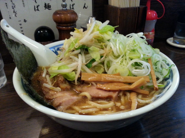 【麺舗十六】第10回 定番の麺(らーめん2玉 野菜トッピング ねぎ増 850円) 2016/03/04