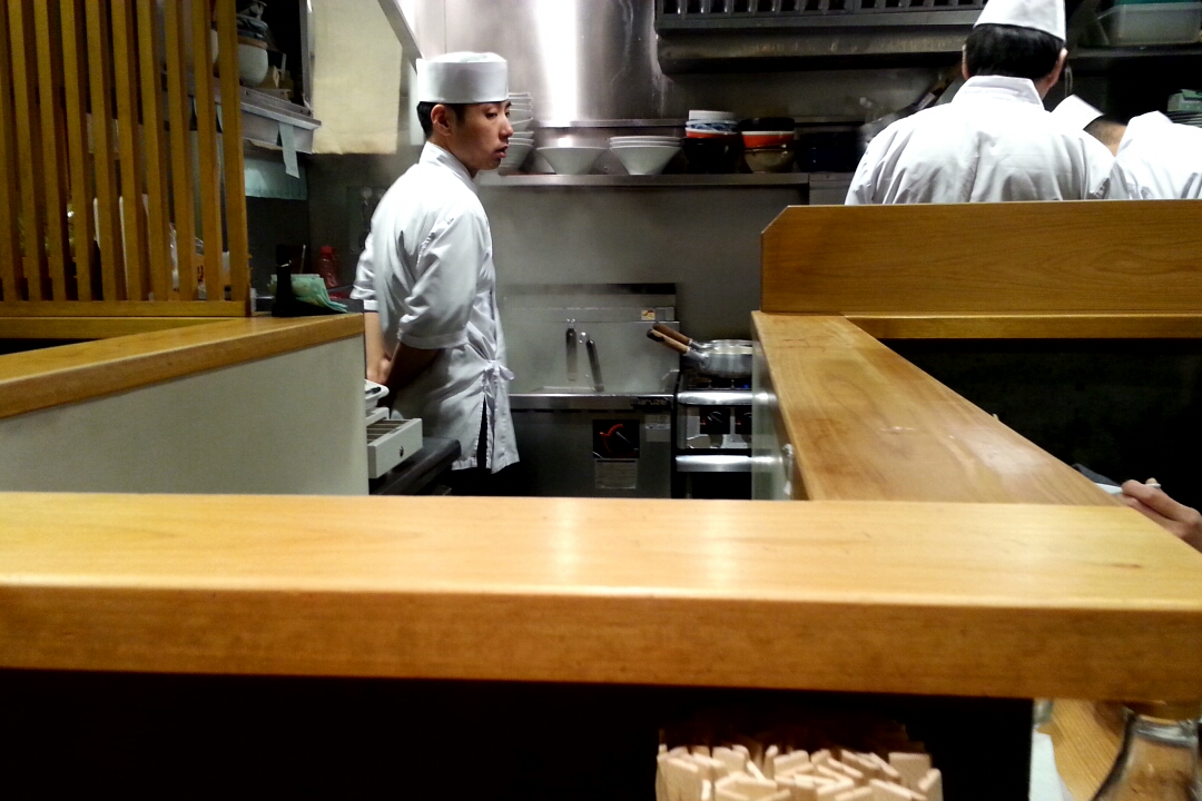 狭い店を日本料理店さながらの服装の店員が動き回るのでとてもアンバランスな感じがした。
