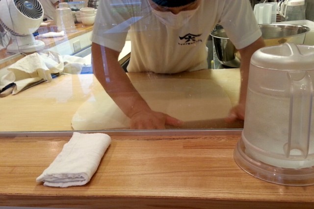 打ち立て麺が食べれます。