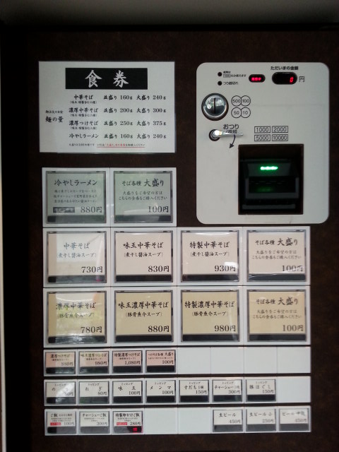 【麺】 中華そば(煮干し醤油) 730円 味玉中華そば(煮干し醤油) 830円 特製中華そば(煮干し醤油) 930円 濃厚中華そば(豚骨魚介) 780円 味玉濃厚中華そば(豚骨魚介) 880円 特製濃厚中華そば(豚骨魚介) 980円 濃厚つけそば(豚骨魚介) 880円 味玉濃厚つけそば(豚骨魚介)980円 特製濃厚つけそば(豚骨魚介) 1,080円 各種大盛 100円※麺量 中華そば 並160g 大盛240g 濃厚中華そば 並 200g 大盛300g (2016/5/9より増量) 濃厚つけそば 並 250g 大盛 375g 冷やしラーメン 880円 【トッピング】 のり 80円 ねぎ 80円 味玉 100円 メンマ 100円 すだち1個 150円 チャーシュー3枚 300円 豚ほぐし 150円 【ご飯物】 ご飯(おかわり無料) 100円 チャーシューご飯 330円 ※お米は新潟県魚沼産コシヒカリ |
