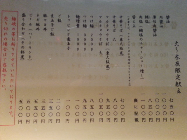 メニューを見ると、東大阪風、マルチョウ・・・いくつもメニューがある。