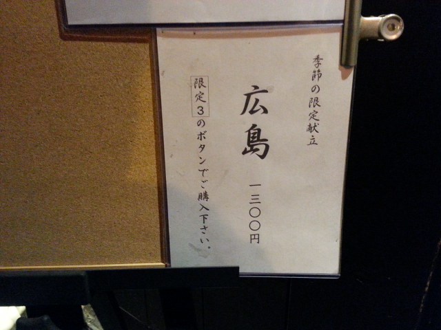 「広島 1,300円」っていうメニューが「限定3」で買えるとたて看板が出ていた。