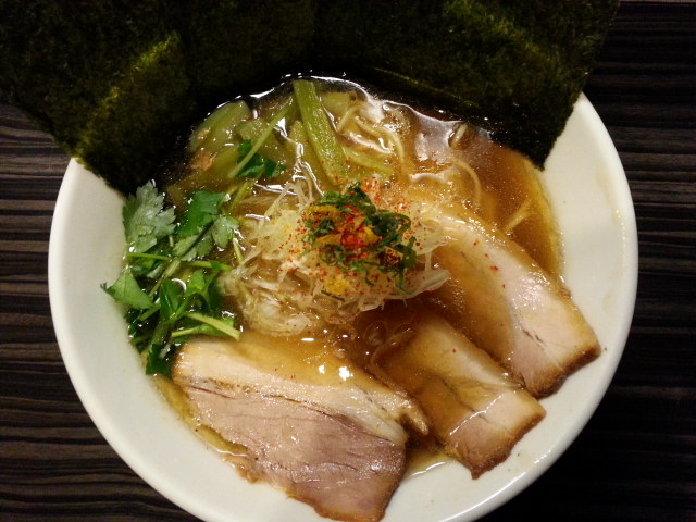 三つ葉・ネギ・シソ・柚子・山クラゲ・チャーシュー1枚にプラスして、