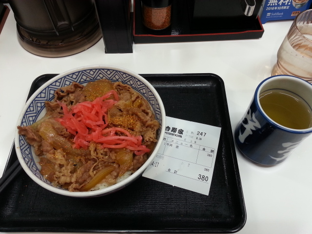 明け方、小岩で吉野家の牛丼を食べた。