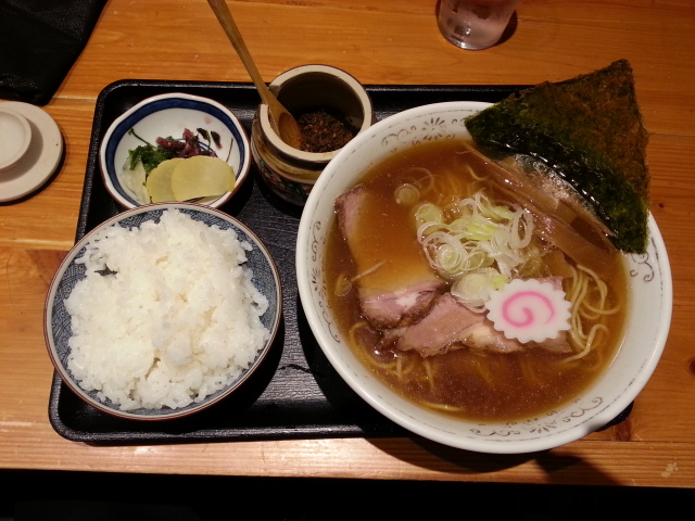 いつもの定番の中華そば(醤油)と新潟県産コシヒカリにした。