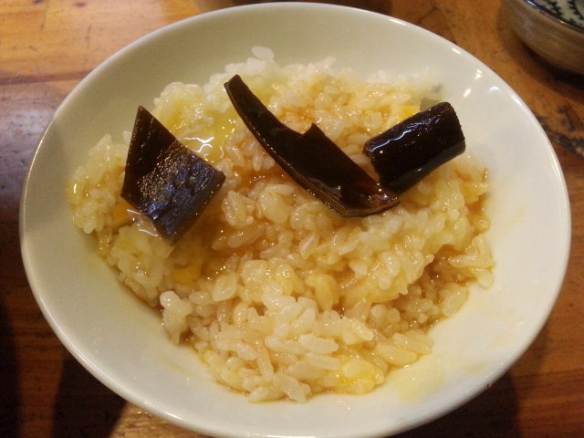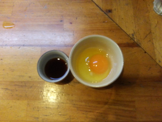 その作業の最中に、先発で、生卵と醤油ダレが提供された。