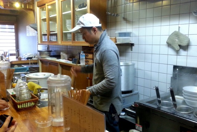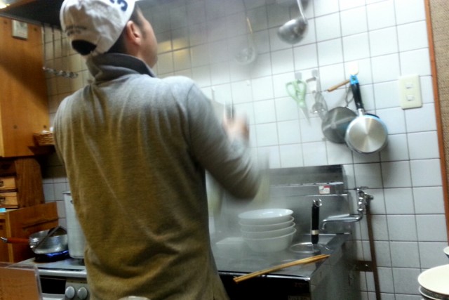 店主は麺を茹でながら、チャーシューを温めてるようだ。
