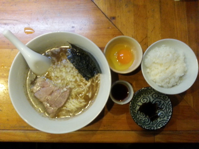 ⑤生卵・・・50円(醤油代わりに煮干しそば麺用の醤油ダレをトッピング)