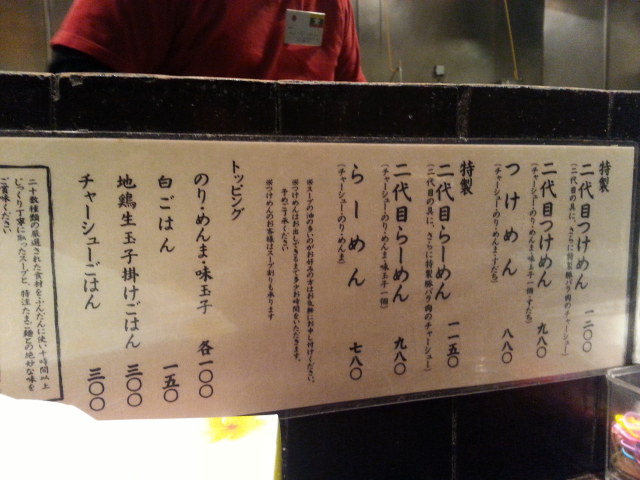 後ろに人が並んだので、よく確認できず「二代目らーめん 980円」にした。
