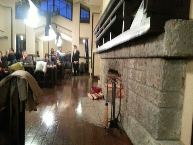 お隣に座った(具体的には私が席を移動して2人席を作った)アベックさんと右斜め前に座った大手通信企業の会社員から聞いたところ、どうやら、毎年行われている企画であり、ボジョレヌーボとコエドビールのイベントに限り、国の重要文化財である自由学園明日館の部屋に暖炉が灯されるそうだ。そして例年、超満員の人気イベントとのこと。