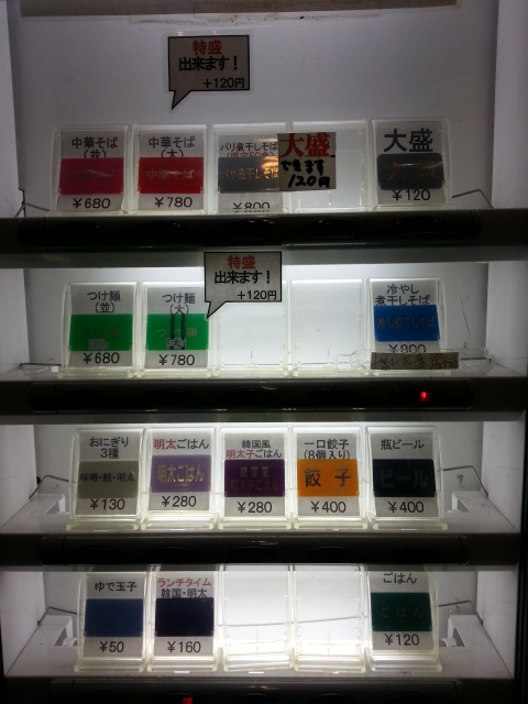 「変なんだよ(と券売機のランプを見せる。オプション以外のメニューはランプがつかない)」