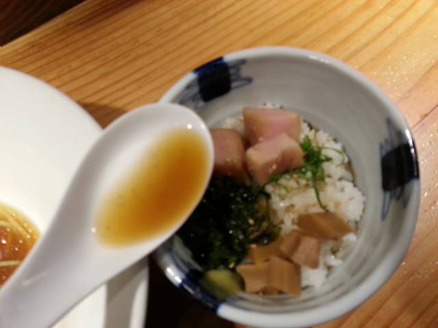 肝心の料理はさっぱり系の味でした。食後にさほど旨味が広がらないのは動物系を殆ど使用していないからだそうです。スープの透明度も動物系の使用量に影響するそうです(使わなければ透明度が増す)。