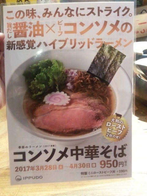 【一風堂 上野広小路店】第1食 割高な”コンソメ中華そば”期間限定 2017/04/20