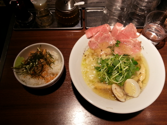 【麺屋ねむ瑠】第1食 赤鶏と蛤の端麗中華そば(塩)+あられご飯 2017/04/24
