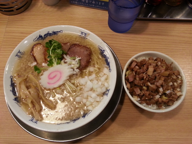本日はランチサービスの肉めし(150円)セットで、アブラ煮干そば 並(780円)初チャレンジ。