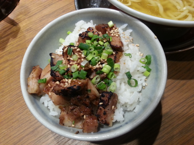 麺処篠はらは肉の脂っぽさを和風ドレッシングで抑制している(中華そば店の肉飯で、群を抜いてうまい)。
