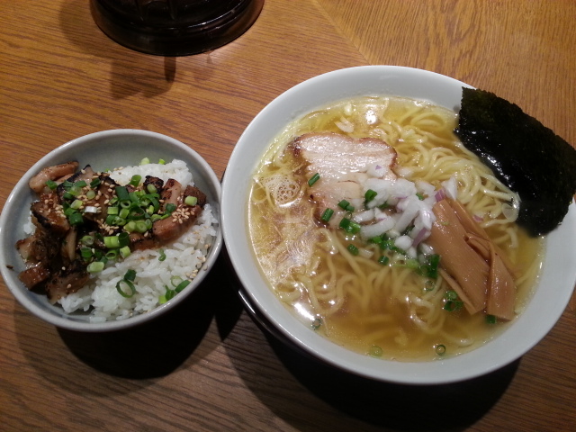 注文は、手もみイリコそば並盛(生麺150g)と、炙り肉ご飯にした。
