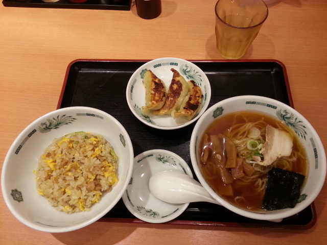 【熱烈中華食堂日高屋 赤坂一ツ木通店】第5食 トリプルハーフ「ラ・餃・チャ」セット550円 2017/06/19
