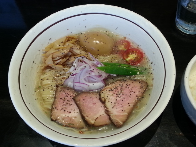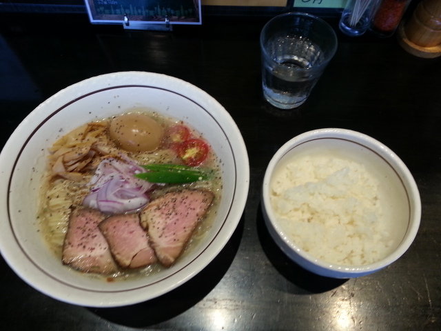 券売機で「冷やし塩そば」と「ライス」を買う。