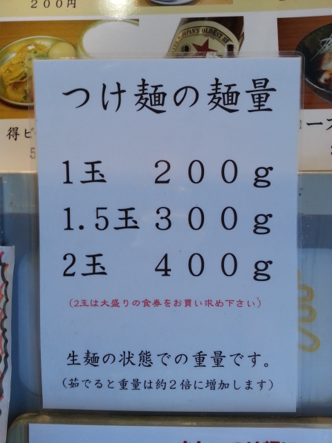 つけ麺の量目