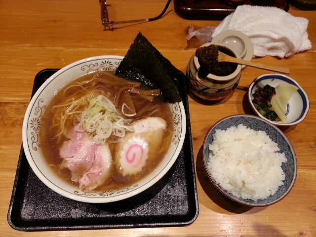 食券は中華そばと新潟県魚沼産コシヒカリを購入。