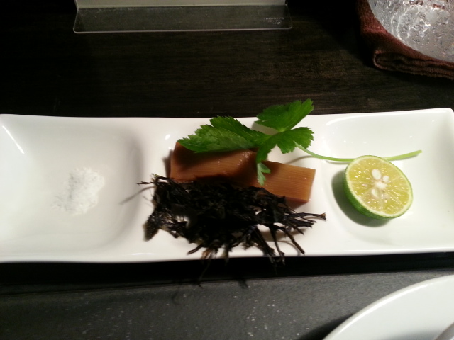 通常は、上記画像のちょうど柚子のおいてあるところに肉が飾られて提供されているようだ。