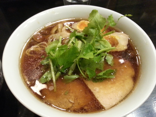 【中華そばしながわ】第117食 ”It Never Rains In Southern California~カリフォルニアの青い風”カスガッソ=秋田産セリ&”ザンネン玉子”&チャーシュー1枚サービス= 2017/09/30