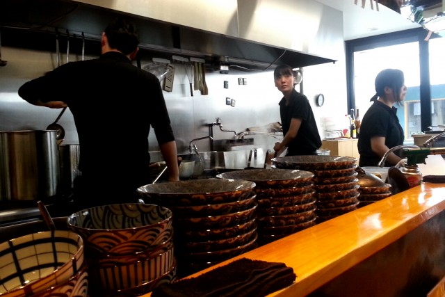 女性のうち1人が麺担当。