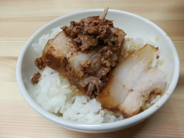 小ライスに肉を盛り付けチャーシュー丼完成!