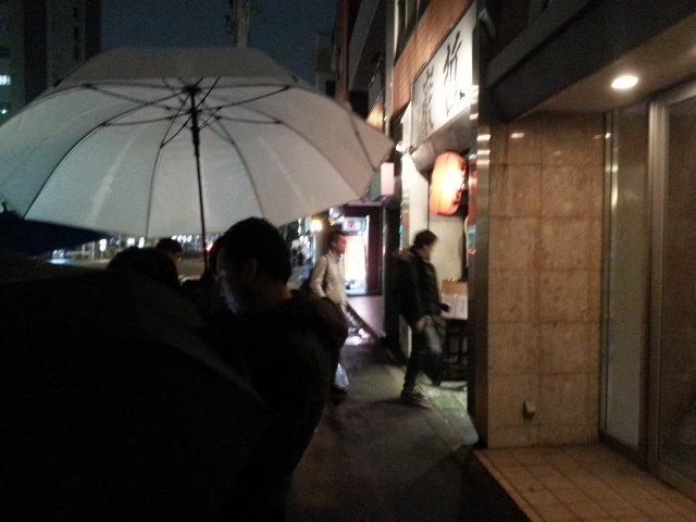 「げ、雨が降って寒い日に既に行列」